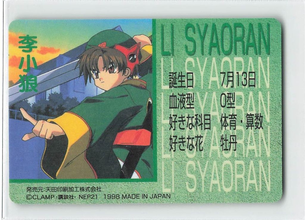 | メーカー | カードキャプターさくら アマダ PPカード キラ No.08 李小狼 アマダ |
