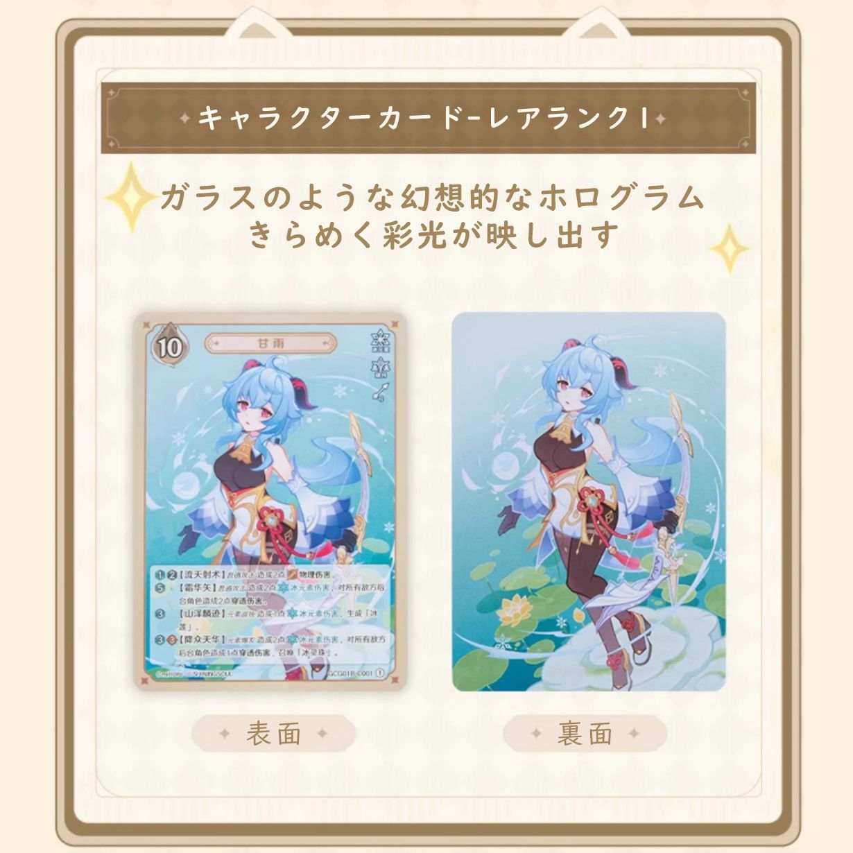 | 商品の特徴 | 公式正規品 原神 七聖召喚 対戦カード 拡張パック Vol.1 中国語。公式正規品 原神 七聖召喚 対戦カード 拡張パック Vol.1 中国語。原神 ShiningSoulコラボ 七聖召喚 拡張パック Vol.1 18パック。数ある商品の中からご覧頂きありがとうございます( ..)\"原神 中国限定 トレーディングカードになります現状日本での発売がされていない中国限定でのグッズとなっております︎✨※同人誌とのコラボしたもの等もあるため、絵柄はものにより異なります「淘宝網」にて購入し、1枚ずつスリーブにしまい冷暗所にて保管しておりました・梱包方法画像の状態(スリーブ入り)→纏めてOPP袋→クラフトボードorダンボールシートor硬質カードケースにて両面折れ防止梱包→OPP袋→封筒・発送佐川急便/日本郵便/佐川急便/日本郵便にて発送・状態輸入を介しているため元からの印刷ミスやキズが1部ございます、ご了承頂ける方のみご購入をお願いいたします・バラ売り600円以上、キャラ毎纏めてのみ〇纏めての方、金額の高い方を優先させていただきますこちらは全てでのお値段です、キャラごとにバラ売りでのお値段が違うためコメントでお聞き願えますと幸いです・お値下げ△全てランダムのものを開封しているためキャラによりレアリティや枚数が大きく異なりますが、詳しくは画像にてお目当てのものをご確認頂けますと幸いです。原神 ShiningSoulコラボ 七聖召喚 拡張パック Vol.1 1パック。⚠50音順に載せてありますその他ご質問や、詳しく見たいものがありましたらお気軽にコメントお待ちしております(*´`)〜在庫のあるキャラクター(50音順)〜︎あ行荒瀧一斗/アルハイゼン/アルベド/アルレッキーノ/アンバー/夜蘭/ウェンティ/雲菫/エウルア/煙緋か行ガイア/楓原万葉/神里綾華/神里綾人/甘雨/閑雲/カーヴェ/キャンディス/凝光/綺良々/久岐忍/九条裟羅/クレー/クロリンデ/刻晴/コレイ/ゴローさ行早柚/珊瑚宮心海/鹿野院平蔵/シグウィン/シャルロット/香菱/シュヴルーズ/魈/鍾離/ジン/辛炎/申鶴/スクロース/セトス/セノた行タルタリヤ/千織/重雲/ディオナ/ディシア/ティナリ/ディルック/ドリー/トーマな行ナヴィア/七七/ナヒーダ/ニィロウ/ヌヴィレット/ノエルは行バーバラ/白朮/ファルザン/フィッシュル/フリーナ/フレミネ/胡桃/ベネット/放浪者/北斗ま行ミカ/モナや行八重神子/行秋/宵宮/ヨォーヨら行雷電将軍/リオセスリ/リサ/リネ/レイラ/レザー/ロサリア2キャラ以上写っているもの缶バッジ/アクスタ | ||