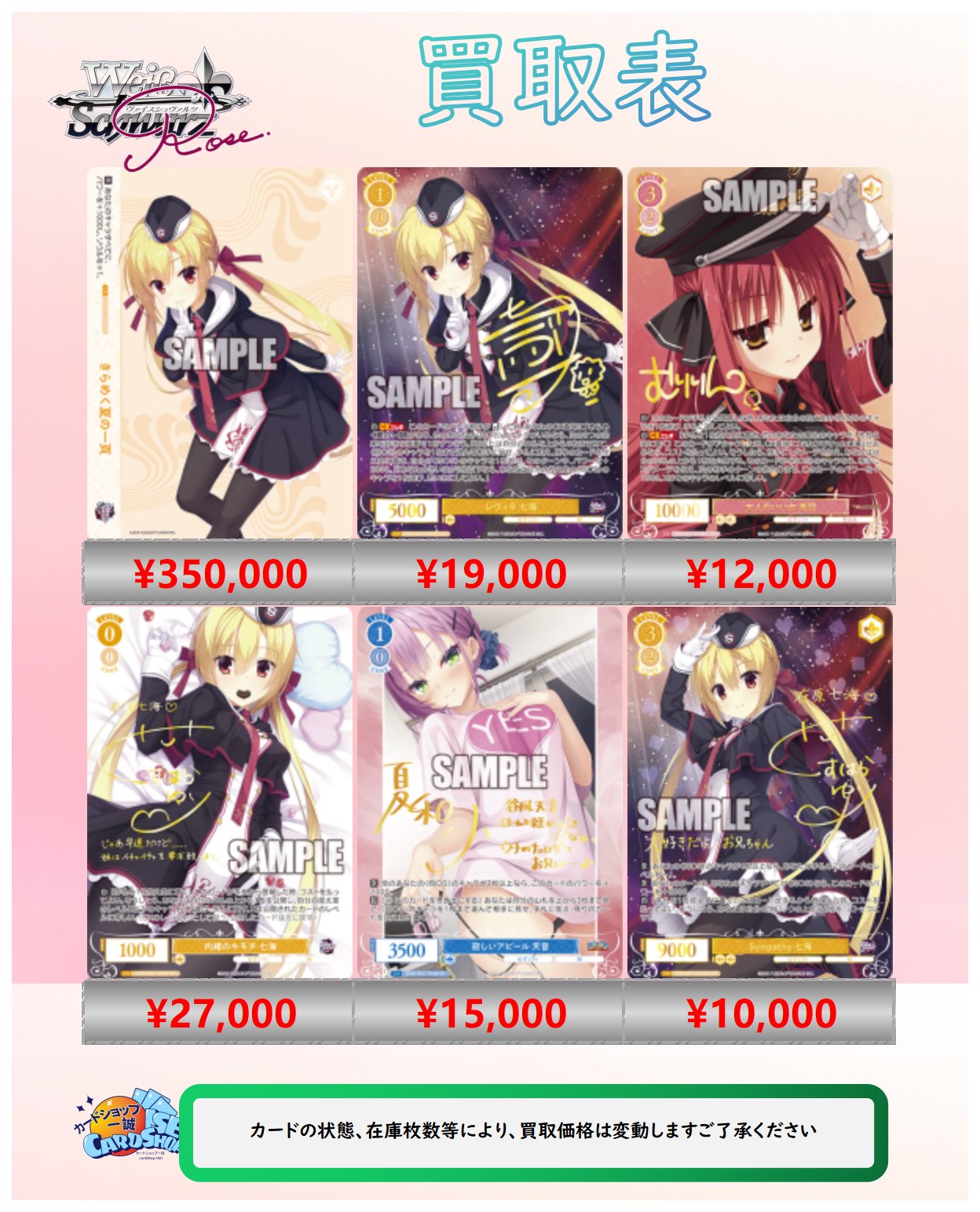 | 商品の特徴 | カードショップ一誠 秋葉原店 on X: 。TD 内緒のキモチ 七海 販売 | ゆずソフト | ヴァイス。WSR】Sympathy 七海【RR】OS01/R01-003 - C-labo OnlineShop。商品はヴァイスシュヴァルツロゼ トライアルデッキ排出の【内緒のキモチ 七海】spになります。ヴァイスシュヴァルツBCF上位入賞プレイマット。ローダーに入れたまま、お送りいたします。ヴァイスシュヴァルツSSP 箔押しサイン 最高最強のコンビ 鏡音レン。すり替え防止のため、購入後のキャンセル、返品等は基本的にお受けしておりませんのでご理解頂ける方のみご購入下さい。ガルガンティア デッキ ヴァイスシュヴァルツ。ヴァイスシュヴァルツロゼ OS01/R01-T01 内緒のキモチ 七海 (TD。自引品になります。二重スリーブ、ローダーに入れ保管しております。S-137 ヴァイスシュヴァルツ ブルーアーカイブ 2BOX+10パック WS。ヴァイスシュヴァルツ グリザイア デッキ 8電源。丁寧に梱包して発送させて頂きます。カードは表面、裏面ともに目立つ傷等なく非常に綺麗かと思いますが、トラブル防止のため完美品をお求めの方は購入はご遠慮ください。赤緑ローデッキ ワンピースカード。ヴァイスシュヴァルツ ダ・カーポ 想いを紡ぐ恋心 立夏 SP サイン。どうぞよろしくお願い致します。#ヴァイスシュヴァルツ#SP#SSP#sec#sec+#アーリャ#ハルヒ#恋人旅行#ホムラ#アイリス#アクア#めぐみん#クレハ#セツナ#フレイヤ#愛理沙#有希#未開封#シュリンク付き#マーシャ#pr+#澪#pr#黄昏のプレリュード#有馬かな#黒川あかね#ヴァイスシュヴァルツロゼ#在原七海#美羽#天音#乃愛#来海#OFR#七海#レヴィ9 | ||