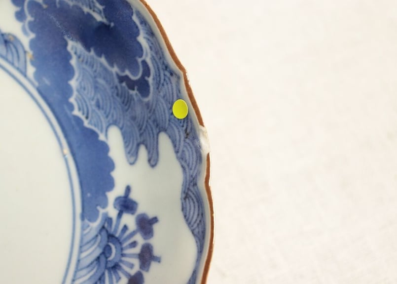 - 美術品・アンティーク・コレクション > 工芸品 > 専用 江戸中期 柿右衛門八角鉢 幅約21.5㎝ 東Y7-0312③タカチ 江戸中期染付藍柿右衛門四方波と水車図6.5寸皿 小ホツ,色薄め