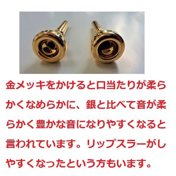 | 商品の特徴 | ♪【全国対応】各種金管楽器のマウスピース・【金メッキ仕上げ。♪【全国対応】各種金管楽器のマウスピース・【金メッキ仕上げ。♪【全国対応】各種金管楽器のマウスピース・【金メッキ仕上げ。♪各種金管楽器のマウスピース・【金メッキ仕上げ加工】格安にて!【送料無料】金メッキをかけると口当たりが柔らかくなめらかに、銀と比べて音が柔らかく豊かな音になりやすくなると言われています。リップスラーがしやすくなったという方もいらっしゃいます。新品のマウスピースの金メッキ仕上げがお薦めです。※全体のGP仕上げ=金メッキ仕上げになります。部分メッキはお受け出来ません。※元の状態の傷、汚れはそのまま反映されますので、マウスペースの油分等、洗浄してお送りください。※価格は税込・北海道・沖縄・離島以外の返送代を含みます。【落札・ご注文の順序】(1)落札・ご注文後、先のご決済をお願いします。(2)弊社まで元払いにて、お送り願います。伊藤平(いとうへい)〒103-0002 東京都中央区日本橋馬喰町1-12-7-1007電話:03-3661-2344(3)仕上げは基本はGP仕上げ(ゴールドプレート)です。(4)YG(イエローゴールド)PG(ピンクゴールド)ご希望のお客様は、メモ等でご指示をお願いします。(5)納期は約7〜10日間程掛かります。◆注意事項 ◆・素地の腐食が大きい場合は見た目や、メッキの持ちの保証が出来ません事をご了承願います。・リムチェンジ、スリーブなど、ワンピースでないものも、一体の状態での加工処理になります。納期は約7〜10日間程掛かります事をご了承願います。元の状態がそのまま仕上がりに影響しますので、ノークレーム・ノーリターンです。※北海道・沖縄・離島のお客様は【送料着払い】でご返送させていただきます。当方の都合で申し訳ございませんが土・日・祭日休業の為、メールの処理が出来ない場合もございますがご了承願います。又、出荷も営業日のみになります。。ヨドバシ.com - バック Bach コルネット マウスピース サイズ。【極美品】アネロ×パールフルート ワンショルダーフルートバッグ。Vandoren V16 サックスリード 3 5本入り 2箱。TOKAN Lyrical No.1 トランペット 東京管楽器。YAMAHA ヤマハ ソプラノサックス ハードケース。【限定値下げ】ベイ クラリネット用 リガチャー GP。vincent bach 1-1/2c リム金メッキ仕上げ EXT処理。値下げ!最終!トロンボーン マウスピース ヤマハ 51C4L-GP 程度良好!。【吹奏、動作良好!】ケルントナー B♭ポケットトランペット ラッカー。セルマー S90 180 ソプラノマウスピース。Rovner アルトサックス用リガチャー ロブナー ヴェルサ V-1RL。オーボエシェーパーティップ ヘルトナーゲル39番。★ワーバートン 4 バックボア。YAMAHA Silent Brass SB7 トランペットミュート。ウッドストーン アルト用リード2.5×1箱+3×1箱+バラ4枚 新品未開封。SELMER アルトサックス リガチャー Small in キャップ付き。デニスウィック Trb/Euph太管用マウスピース 5BL GP。クラリネット初心者練習セット。トランペットピストンボタン | ||