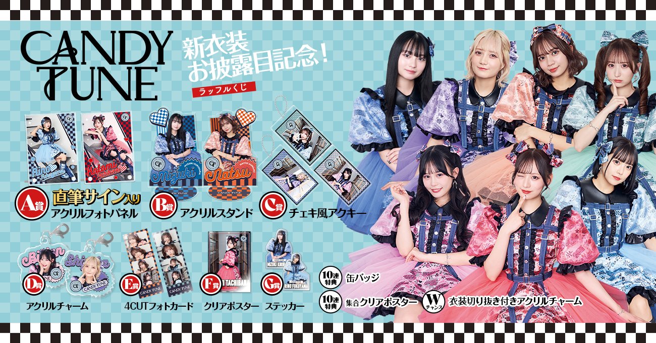 | 商品の特徴 | RAFFLE(ラッフル)【公式】 على X: 。CANDY TUNE「君もゾンビですか ゾンビですね」MV公開記念。CANDY TUNE 初単独公演記念 ラッフルくじ | RAFFLE。CANDY TUNE 初単独公演記念 ラッフルくじ | RAFFLE。CANDY TUNE ラッフルくじC賞アクスタ、D賞推しアクキー、E賞アクキー、F賞ステッカーB、G賞3cutカードA | ||