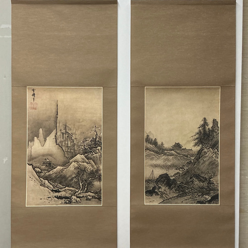 | メーカー | 【真作】渡辺石華/秋冬山水図/対幅/京山水図/掛軸/名家伝来/AD-754 日本の名画 |