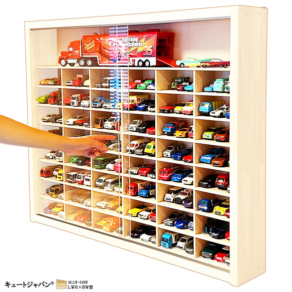 | 商品の特徴 | ミニカーケース トミカ144台・大型サイズ収納 アクリル障子付。ミニカー 収納ケース 60台 コレクション アクリル障子付。ミニカー 収納ケース 60台 コレクション アクリル障子付。【本体寸法】 巾734ミリ/高さ594ミリ/奥行92ミリ。【マス目寸法】 巾111ミリ/高さ50ミリ/奥行60ミリ。アクリル障子付の収納ケース 未使用製作品 LF6×10型です。ゆったりミニカー(箱入り)が60台収納でき、コレクションを惹きたてるディスプレイケースです。外枠にメルクシパイン集成材・中桟にたわみの無い5.5ミリ厚のラワンベニヤを使用しています。外枠・中桟・背板中面にオイルステインマホガニ色塗装。お部屋のインテリアコーディネートに・・・。お片付けが苦手なお子様にも楽しみながら整理上手に・・。プレゼントにもおすすめです。アクリル障子は透明度が高く、大切なコレクションをホコリや傷から守ります。大事に保管したい皆さまにご満足いただける一品と自負しております。コレクター様に『こんなの欲しかった!』 そう言わせたい一心で製作しました。アクリル障子付ケースは3割を超える方がリピート(感謝!)されています。ありがとうございます。ミニカーは付属していません、ケース本体のみの販売です。購入時の注意点:材料は建材を使用していますが、表面は天然木のため色目・木目・節の具合がその都度変わります。天然木独特のシミ・節目・割れ・接ぎがある場合がありますが、構造上問題はありません。製作では裏面の意匠は視覚的に重要視していません。ご了承ください。●スライド式障子は光線透過率93%の高品質アクリル板3ミリ厚を使用しています。引手加工をほどこしていますので開け閉め楽々です。●外枠に木目を活かしたパイン集成材を使用しています。長年お使いいただけるよう頑丈な造りとなっています。※中桟は固定式で可動はしません。サイズをご確認のうえご購入ください。※商品の規格表を掲載しています。お探しの収納寸法がきっと見つかります。ご不明な点などご質問ください。ご購入された方の『コレ、また欲しい!』の嬉しいご感想を励み(ビタミン剤です!)にして、日々製作を行っております。製作・販売元 株式会社キュートジャパン#キュートジャパン#トミカ#トミカリミテッド#トミカリミテッドヴィンテージ#京商#ホットウィール#ミニカーケース#ミニカー収納#トミカケース#トミカ収納#プレゼント。マホガニ色全塗装 トミカ収納ケース 80台 1/64 アクリル障子付。たまごっちuni pink 本体。コンコンブル かっぱとやしの木。ヒーロー プロテクター コスプレ。ディズニーショーケース シンデレラフィギュア。送料無料【新品未開封】おまけ付 転生したらスライムだった件 シオン キューズQ。服部玩具 リアルサウンド トムキャットF-14 戦闘機 箱付き。グリムロック トランスフォーマー シャッタードグラス 海外限定。ドラゴンクエストモンスターズ2 イル ぬいぐるみ 美品。【未開封品】【希少】コナミ ダンジョンクエスト 第二章 魔法使いエミル LSI。【値下げ】Dream Switch 2。ハローレディリン オルゴール 昭和レトロ おもちゃ。★10個セット★ ネフェルピトー VIBRATION STARS。スクイーズ 大福餅。バンダイ たまごっち4Uプラス レモンイエロー。たまごっちみくすサンリオコラボ。【新品未使用】たまごっち4Uきせかえカバー 東京原宿POPスタイル たまデパ限定。新品未使用未開封 スター・ウォーズ ダース・ベイダー ボイスチェンジャー マスク。新品未開封 仮面ライダー キバ ガルルセイバー バンダイ。その他 Mizu。【未組立品 スーパービーダマン】ファイティングフェニックス ブルークリア。ベイブレードx 25周年記念セット。Coco サイズ幅682×奥行352×高さ235mmのアクリケース♪。キングダムハーツ 一番くじ。プロセカ あんスタコラボ 缶バッジ 青柳冬弥 15個セット。【レア】 Disney グッズ ⭐︎。【動作確認済】たまごっちプラスカラー 水色。リトルタイクス ガソリンスタンド。werdo clutch little chop design ソフビルイージ | ||