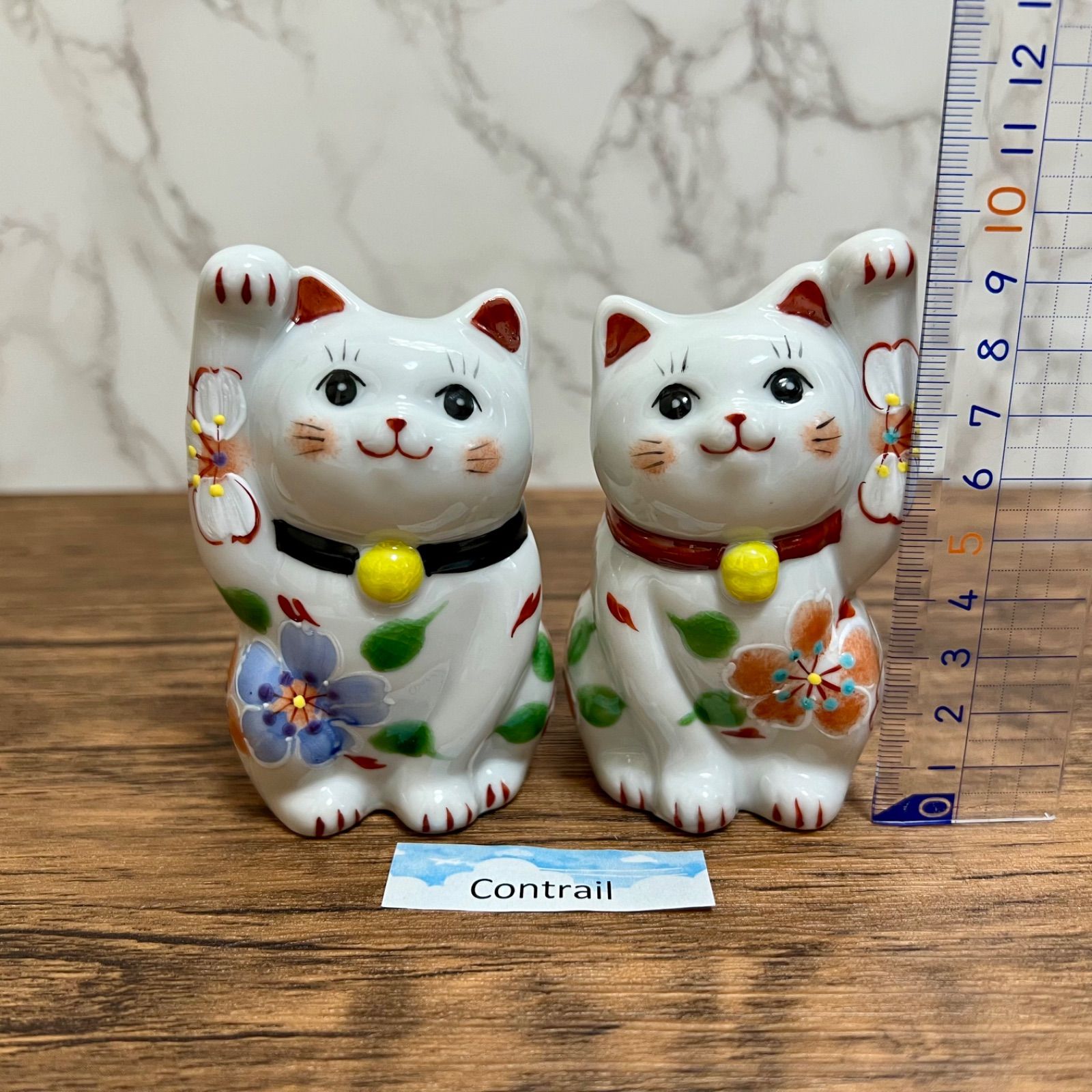 - 美術品・アンティーク・コレクション > 工芸品 > 【匿名配送】九谷焼 招き猫 縁起尽くし 新品未使用 商売繁盛 招福 縁起物 九谷焼】ペア 招き猫 彩日和 染(右手)& 赤(左手)千客万来 金