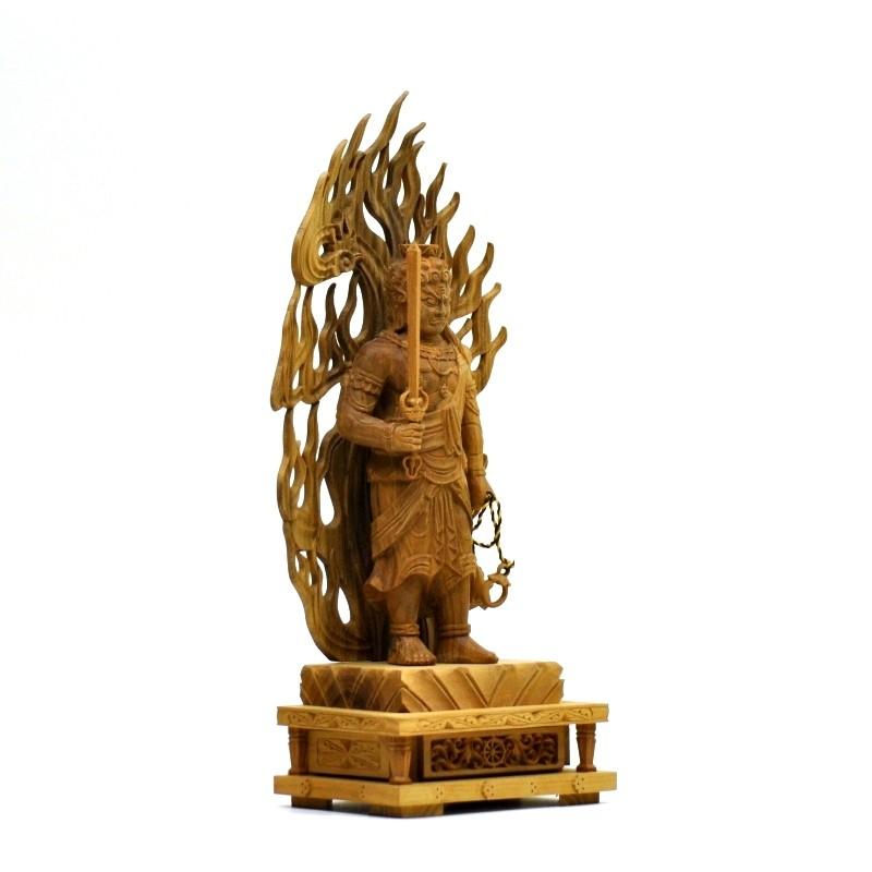 - 美術品・アンティーク・コレクション > 彫刻・オブジェ > 決算大特価中 白檀仏像★白檀 不動明王3.5寸 金泥★お不動さん★お仏壇に 木彫り仏像 【不動明王】 白檀 火炎光背四角台 立4.0寸 総高24cm