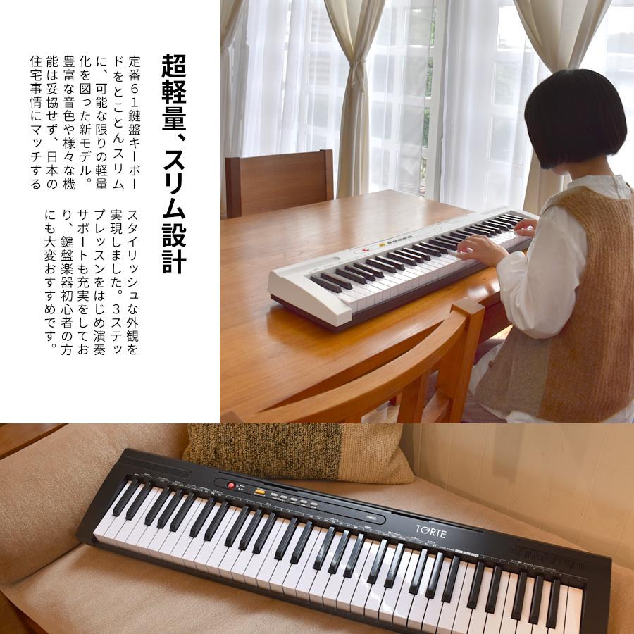 | 商品の特徴 | キーボード ピアノ 61鍵盤 超軽量スリム設計 TORTE TSDK-61。楽天市場】キーボード ピアノ スリム設計 超軽量 61鍵盤 TORTE。キーボード ピアノ 61鍵盤 超軽量スリム設計 TORTE TSDK-61。1ヶ月ほど使用しました。____________________61鍵盤の超軽量デジタルキーボード、300ボイスとリズム機能搭載。。61鍵盤/TORTE TSDK-61トルテ キーボード電子ピアノヘッドフォン。傷や汚れはほとんどありません。新品 キーボードスタンド X型+椅子 セット 折りたたみ 電子ピアノ(ホワイト)。ピアノ用補助台とYAMAHAメトロノームセット。- モデル: TORTE TSDK-61- 鍵盤数: 61鍵盤- 特長: 超軽量スリム設計- リズム機能: 300ボイス300リズム- レッスン機能: 3ステップレッスン機能- 付属品: マイク、ACアダプターご覧いただきありがとうございます。TORTE TSDK-61 61鍵盤デジタルキーボード | ||